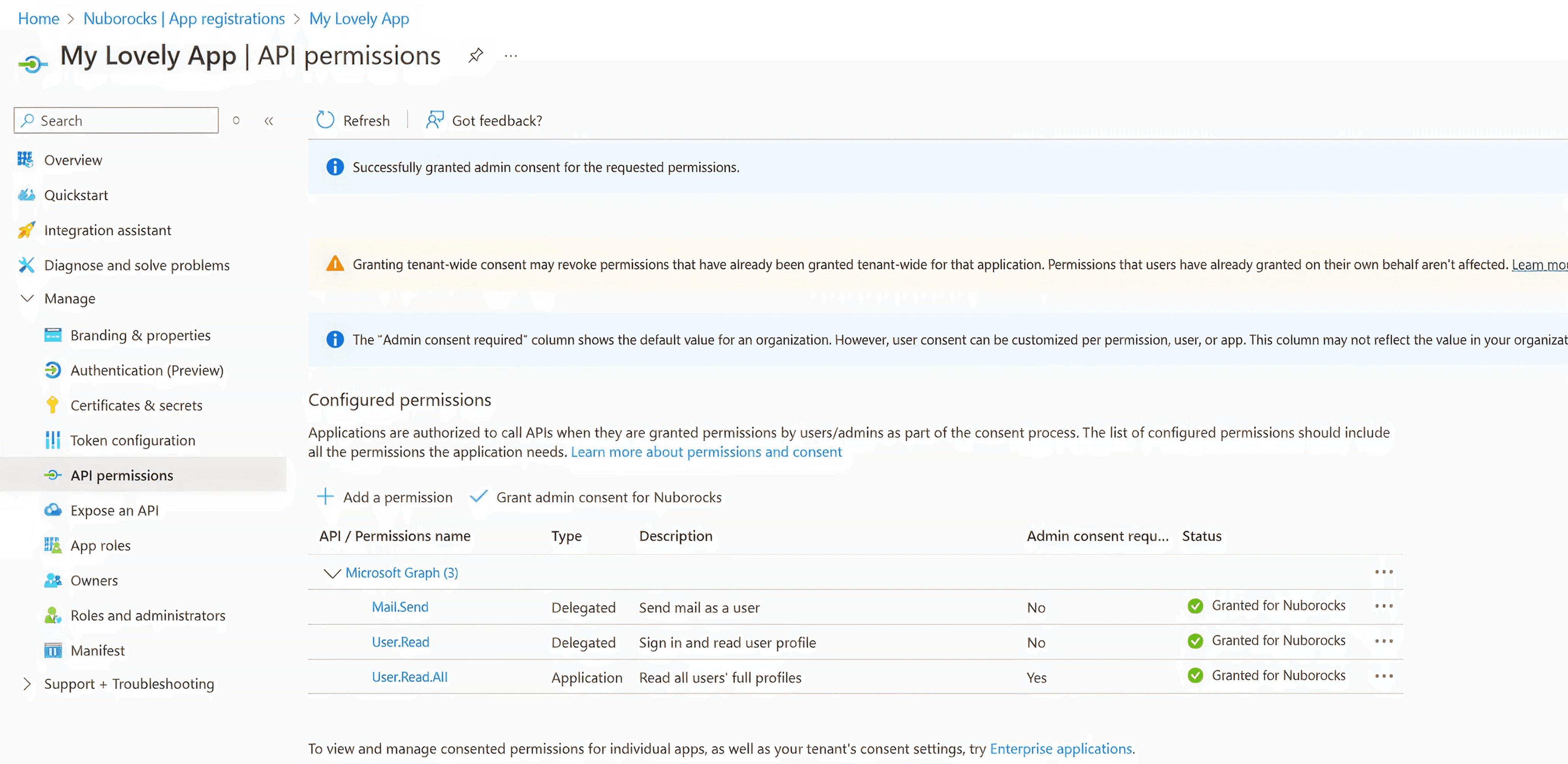 - Whether admin consent has been granted